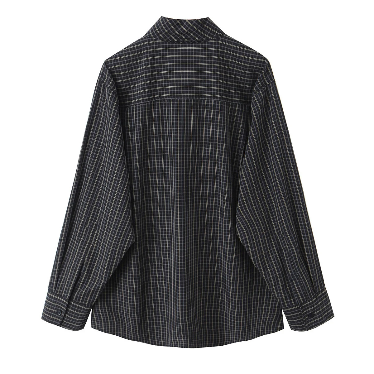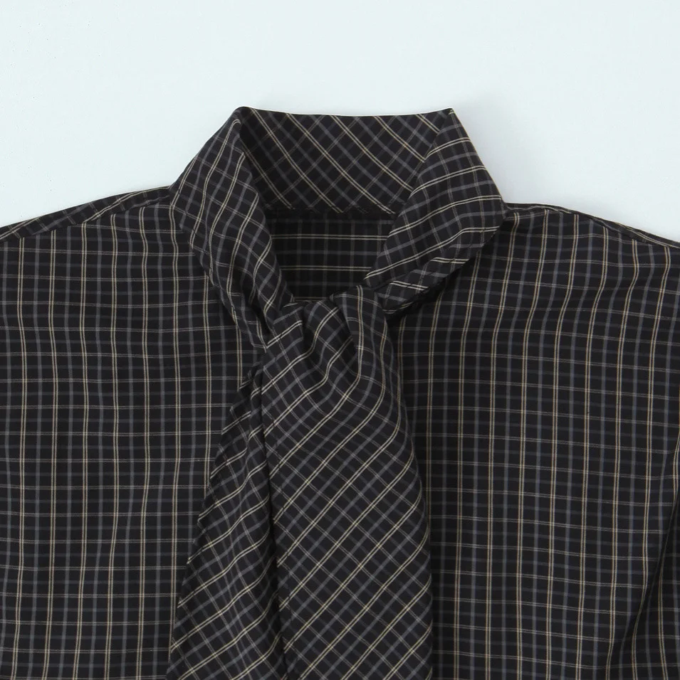 Custom Women Long Sleeve Plaid Shirt with Detachable Scarf 100% Cotton Button Down Blouse Office Casual Wear OEM Factory Direct